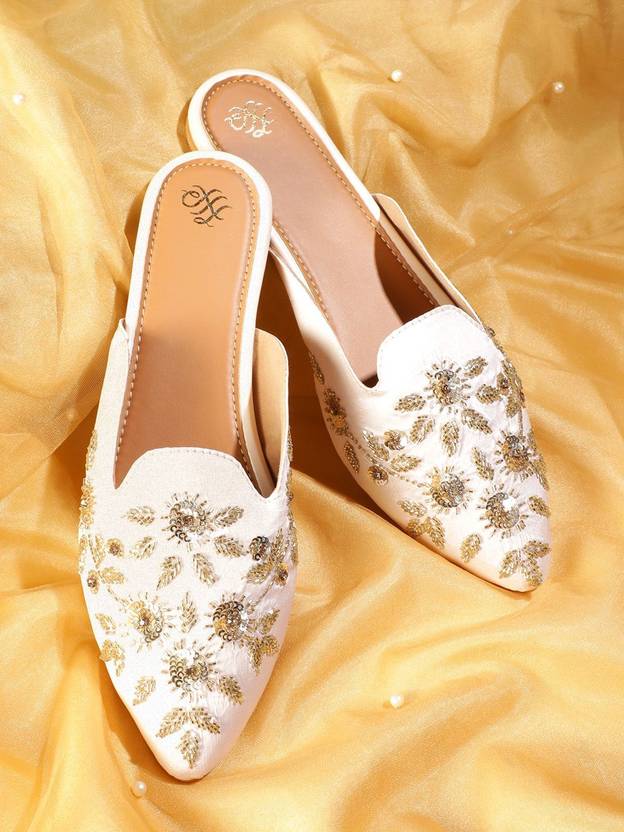 A pair of white embellished mulesUpper Material: syntheticCushioned footbedTextured and patterned outsole