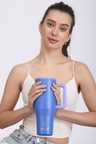 House of Quirk 1200ML Tumbler with Handle & Simple Flip Straw - Car Cup Holder Friendly, Leak Resistant Water Bottle-Reusable Insulated Stainless Steel & Rubber Base
