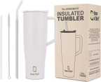 House of Quirk 1200ML Tumbler with Handle and 2 Straw Flip Lid, Stainless Steel Large Water Bottle Gifts for Women Men Stay hydrated in style with this 1200ML stainless steel tumbler, designed for both men and women. Whether you're on the go or relaxing at home, this large-capacity water bottle is perfect for keeping your favorite beverages at the ideal temperature. Featuring a durable stainless steel construction, it ensures long-lasting use and excellent insulation. Generous 1200ML Capacity: Ideal for those who need to stay hydrated throughout the day, whether at the gym, office, or outdoor adventures.Stainless Steel Construction: Built to last with a double-wall vacuum insulation that keeps drinks cold or hot for hours.Convenient Handle: The sturdy handle makes it easy to carry, ensuring a secure grip even when you're on the move.Straw Lid: Enjoy spill-proof sipping with the included straw lid, perfect for preventing leaks while maintaining easy access to your drink.Versatile Gift: A thoughtful gift for women, men, friends, or family, perfect for any occasion.Size:10 x 27 cm