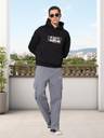 This product features a stylish black hoodie designed with a bold graphic on the back, showcasing a character from the popular anime series Jujutsu Kaisen. The character depicted is Satoru Gojo, a powerful sorcerer, with vibrant purple and white colors that add a dynamic visual appeal to the hoodie. The hoodie has a classic design with a front kangaroo pocket and an adjustable drawstring hood, making it both comfortable and functional.