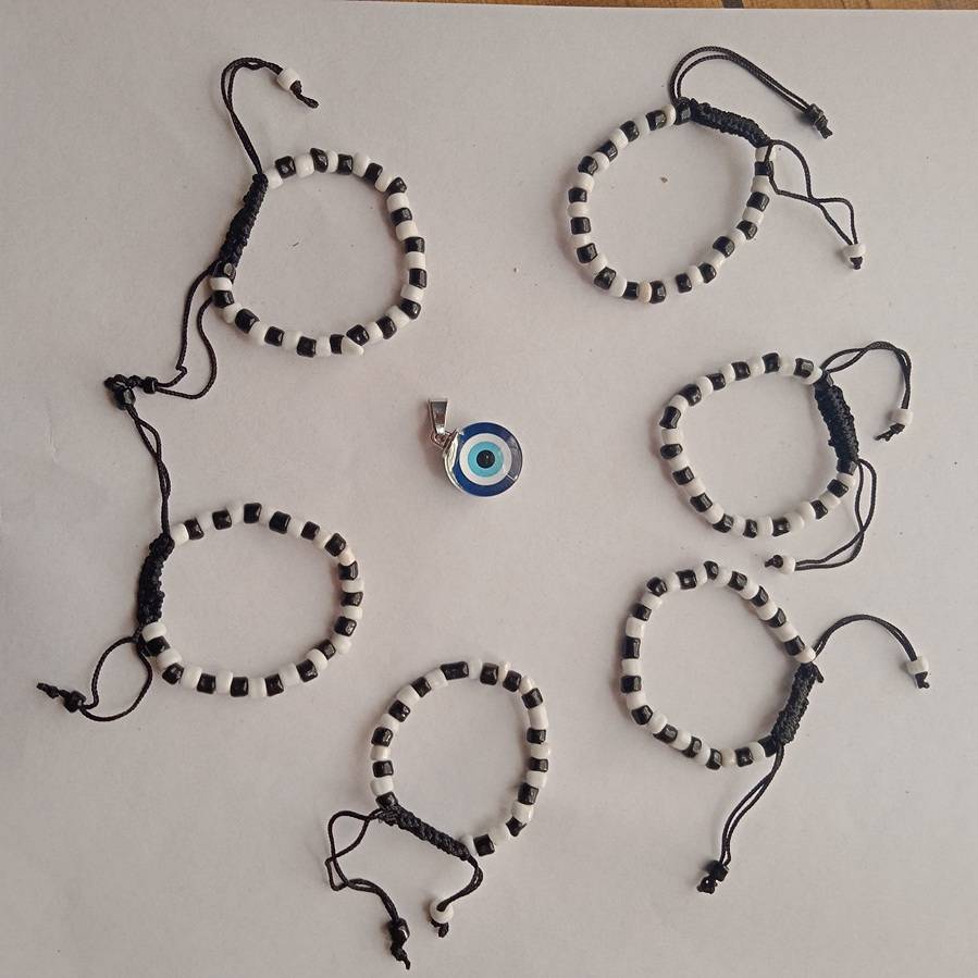 This Baby Nazariya Bracelet & Anklet Set is specially designed to protect newborns and infants from the evil eye, as per traditional Indian beliefs. Made with soft, skin-friendly black and white beads, this set is lightweight, comfortable, and safe for everyday wear. The adjustable design ensures a perfect fit for babies, making it suitable for daily use, naming ceremonies, or gifting purposes. A perfect blend of tradition, safety, and comfort for your little one.