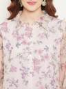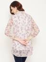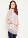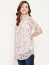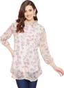 Georgette Off White Printed Tunic with attached lining, Has a Shirt Collar, Three- Quarter Sleeves, Tie-up Detail And Button Closure.