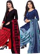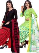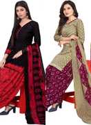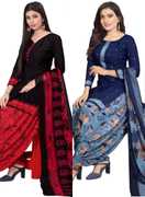 Threads Womens Cotton Blend Printed Unstiched Dress Material. Add style to your Daily Wear Collection with this Printed Dress material Salwar suit. Two Unstitched Salwar, Two Unstitched Top, Two Dupatta. Top & Bottom Fabric : Cotton Blend, Dupatta Fabric : Martina Chiffon, You can use it for daily wear purpose it will give you immense comfort and fresh styling look.
