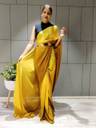 Ready to Wear Dyed Bollywood Chiffon Saree (Yellow, Gold)