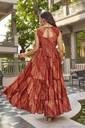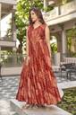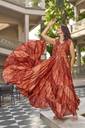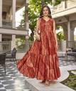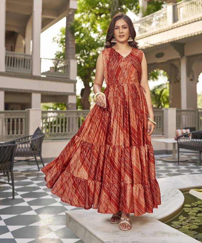 Printed Silk Blend Stitched Flared/A-line Gown (Green)