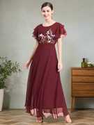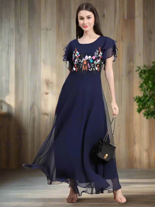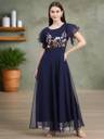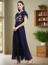 Embroidered Georgette Stitched Flared/A-line Gown (Maroon)