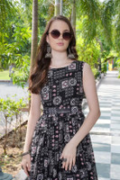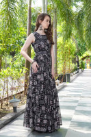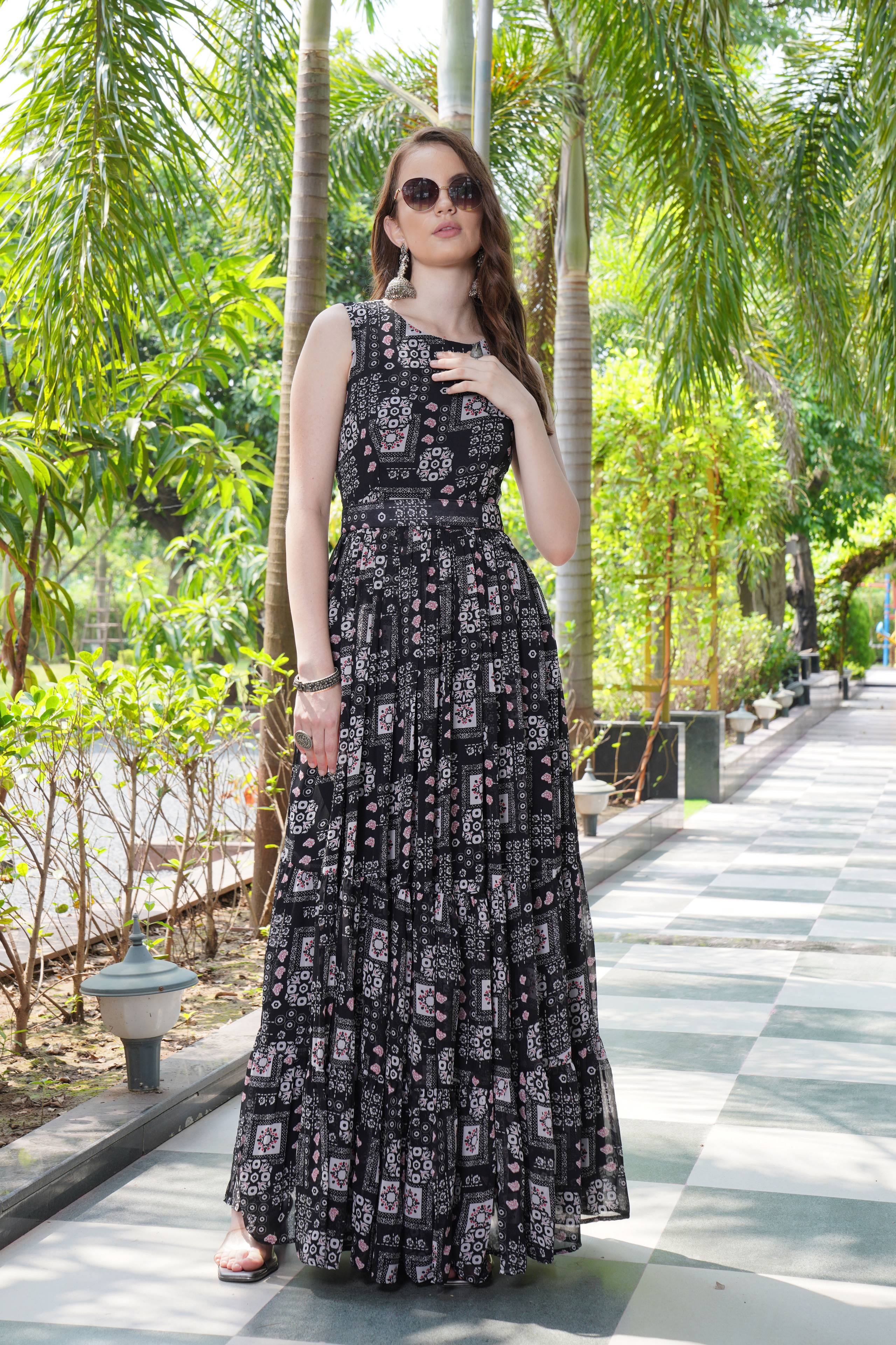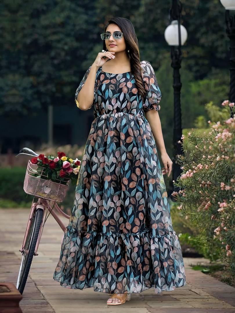Thanks to its versatile wear option, this gown transitions effortlessly across different occasions. Besides, the flowing silhouette and pattern make it suitable for celebrations, social gatherings, or semi-formal settings. Consequently, it becomes a wardrobe piece that blends style, comfort, and adaptability.