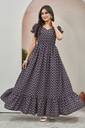 "Odd by Chansi Trendz" is the most eminent name in the fashion market for supplying a wide assortments of trending wholesale ladies wear from Surat. Being one of the best manufacturers and wholesalers of ladies wear in Surat This elegant Rich colour maxi gown is designed to make a statement with its delicate floral prints and feminine charm. Crafted from lightweight, breathable fabric, it ensures both comfort and style for all-day wear. **The gown features a tiered hem with ruffled layers, puffed sleeves with gathered detailing, and a cinched waistline that beautifully enhances your silhouette. Perfect for festive occasions, casual outings, or garden parties, this gown effortlessly combines elegance and versatility. Pair it with statement jewelry and block heels to complete the look. A timeless addition to your wardrobe, this gown is as easy to maintain as it is to style**.