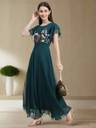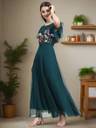 Embroidered Georgette Stitched Flared/A-line Gown (Maroon)