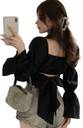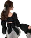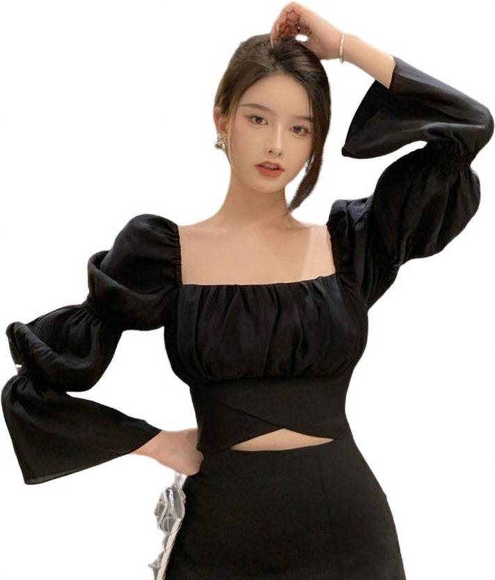 Formal Puff Sleeves Solid Women Black Top