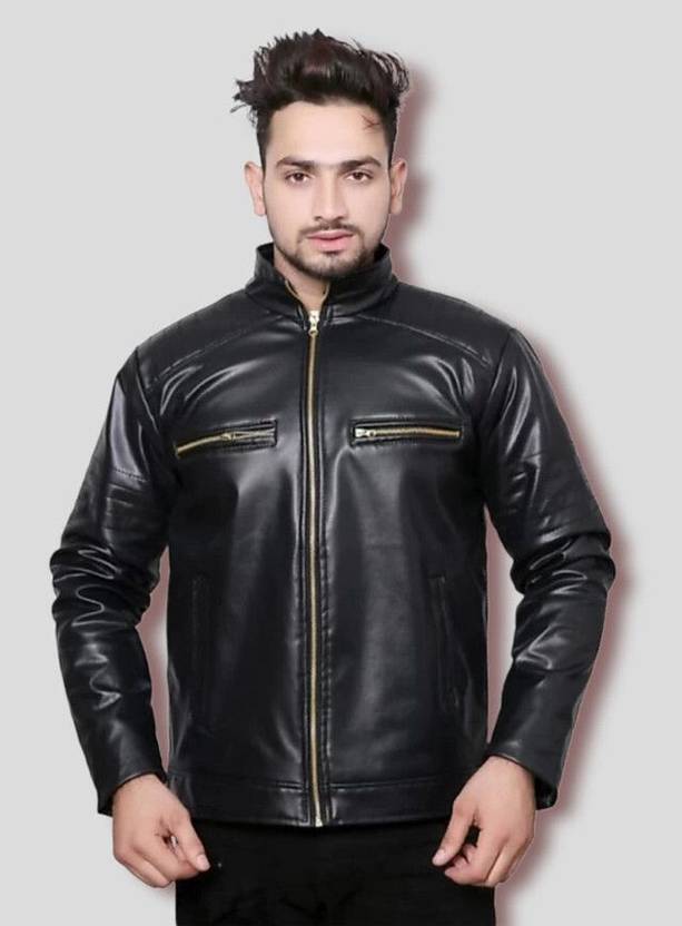 Men Solid Leather Jacket