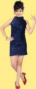 Girls Above Knee Party Dress (Black, Sleeveless)