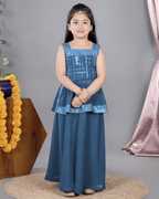 Girls Lehenga Choli Ethnic Wear Embroidered Lehenga & Kurta (Blue, Pack of 1)