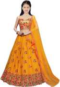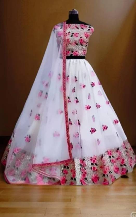 HouseOfCommon Girls Lehenga Choli Ethnic Wear Embroidered Lehenga, Choli and Dupatta Set (White, Pack of 1)