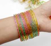 Glass shiny bangles with metel ball 12pcs best in party wear