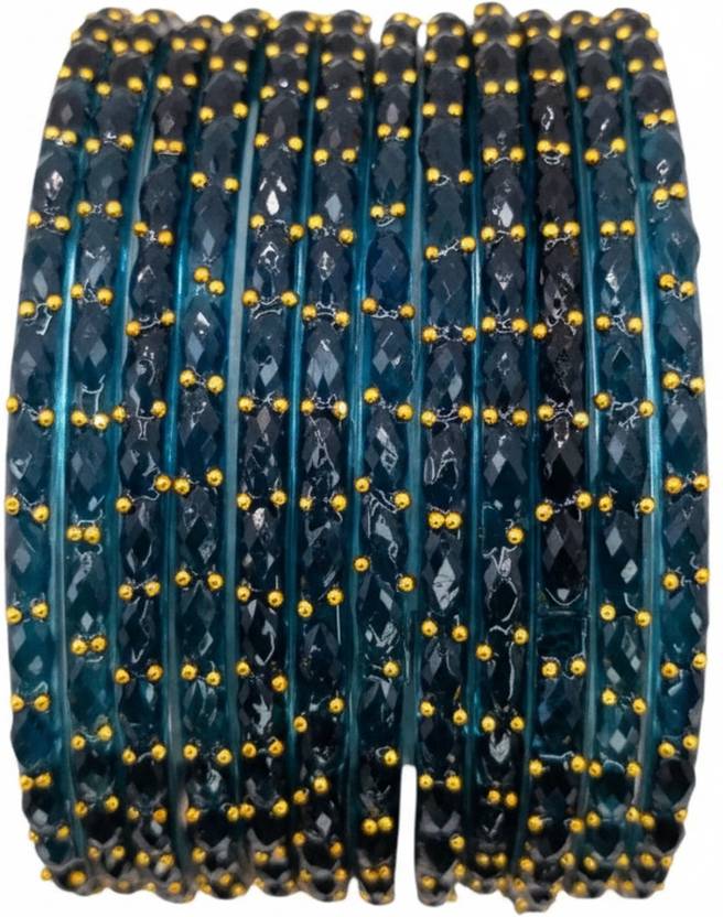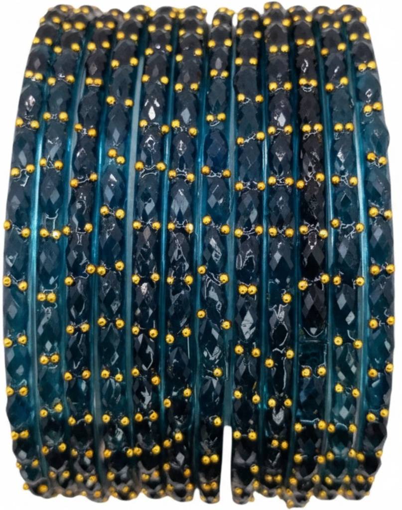 Glass shiny bangles with metel ball 12pcs best in party wear