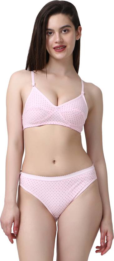 HouseOfCommon Bra & Panty Set Polka Print Pink Lingerie Set