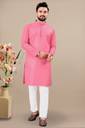 Look your ethnic best wearing this coloured kurta pyjama set. Made from Cotton regular-fit kurta pyjama set comprises a full-sleeved kurta and pyjama to complete your look.
