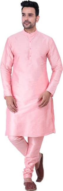 Sadree Men Solid Cotton Blend Asymmetric Kurta (Pink)