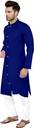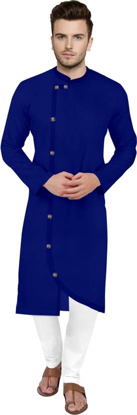 Men Solid Cotton Linen Asymmetric Kurta (Blue)