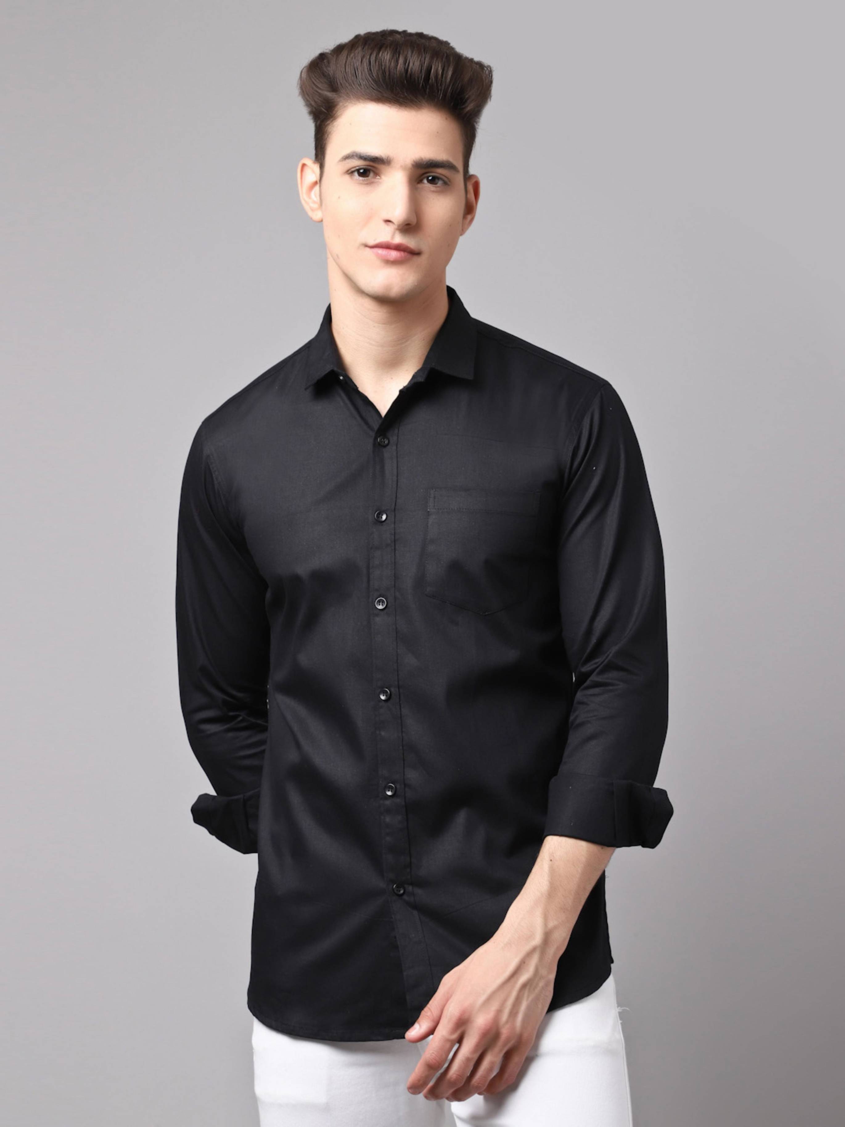 SOUNDRYAFABRIC Men Solid Casual Black Shirt