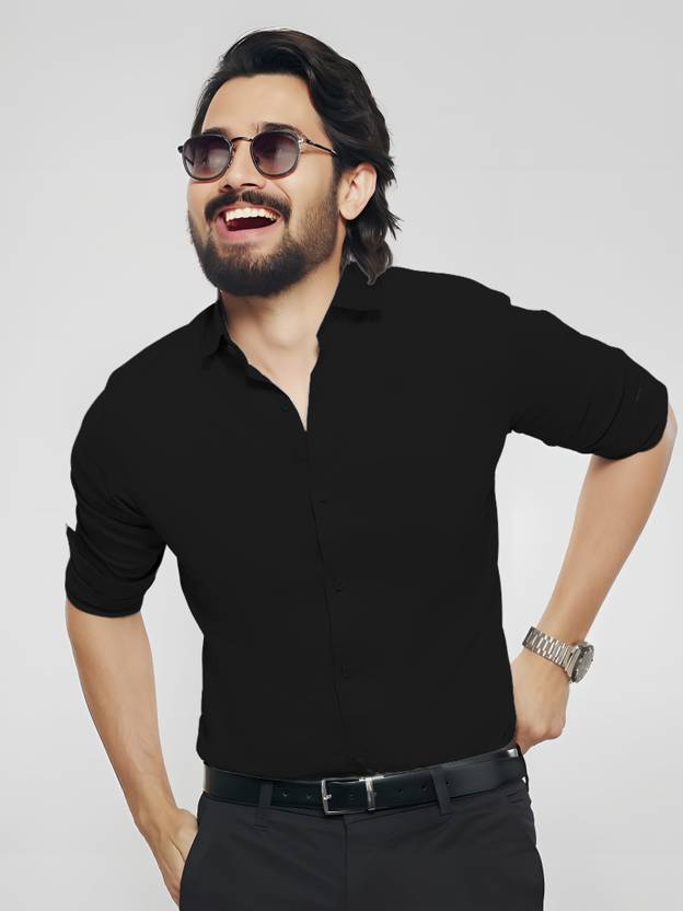 Vuon fab Men Regular Fit Solid Curved Collar Casual Shirt