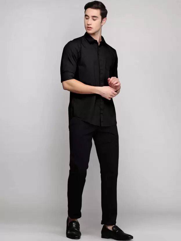 Men Slim Fit Solid Spread Collar Casual Shirt