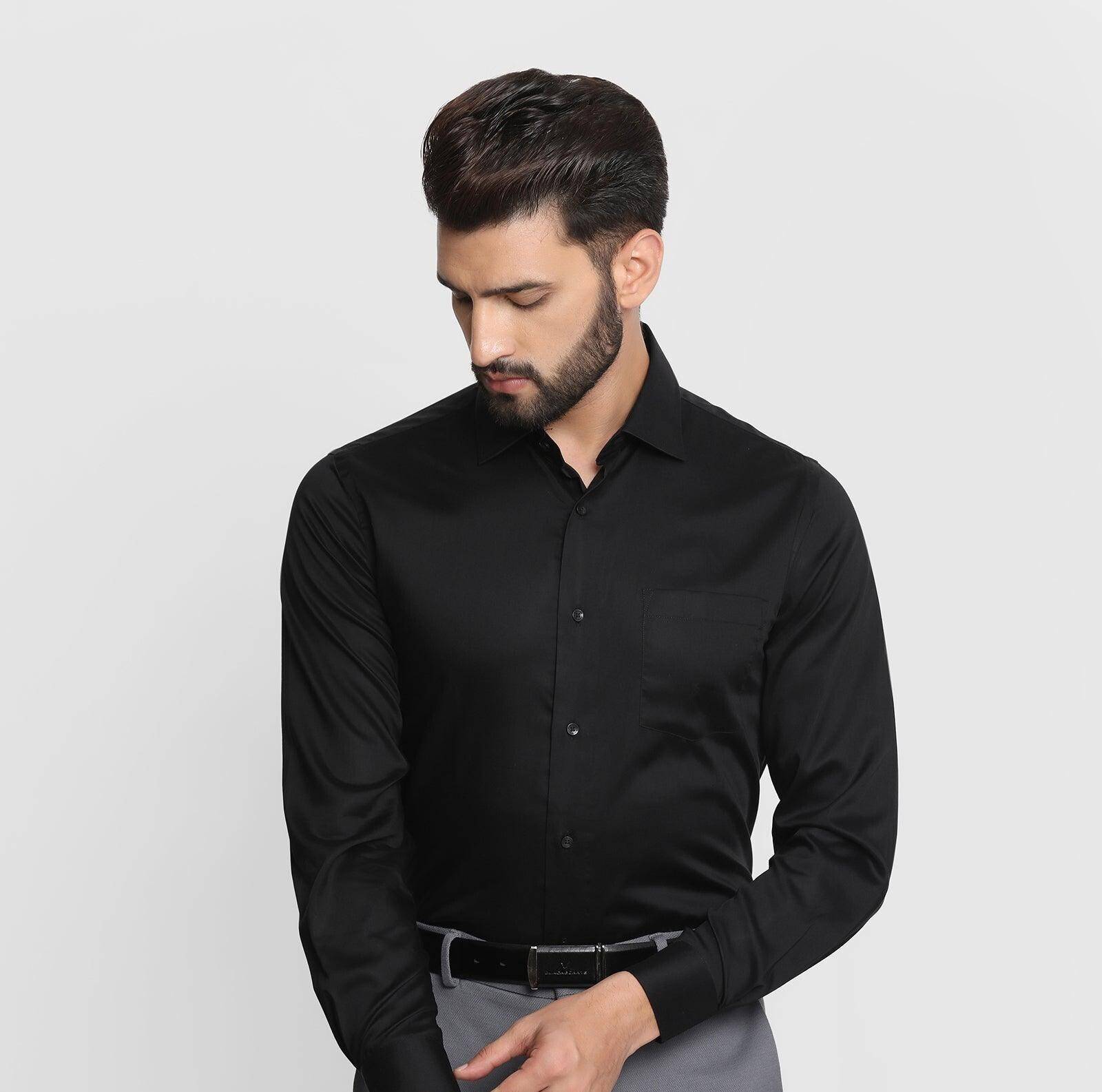 SOUNDRYAFABRIC Men Solid Casual Black Shirt