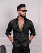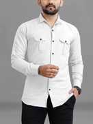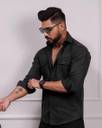 Men Regular Fit Solid Mandarin Collar Casual Shirt