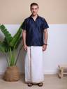 HouseOfCommon Men Solid Casual Dark Blue Shirt