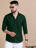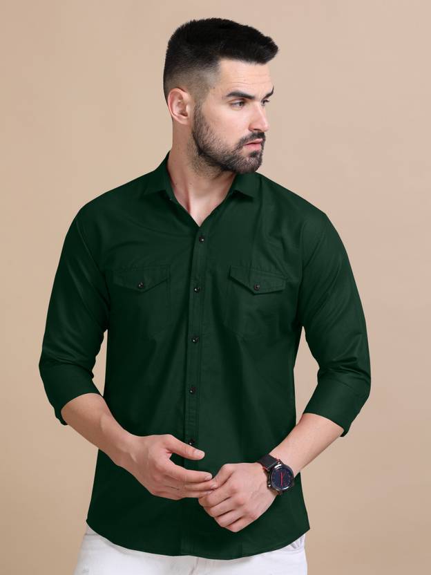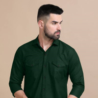 VTEXX Men Solid Casual Dark Green Shirt