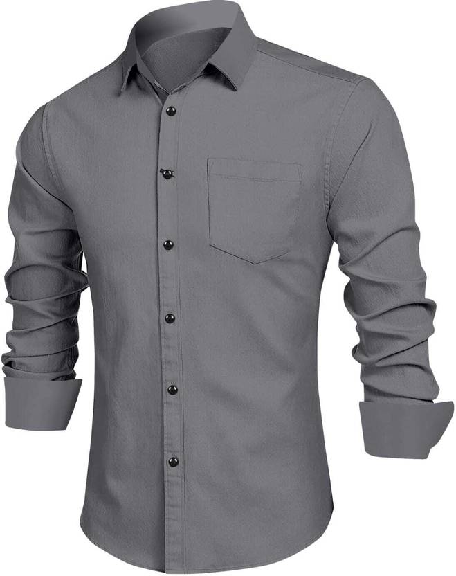 HouseOfCommon Men Regular Fit Solid Button Down Collar Casual Shirt
