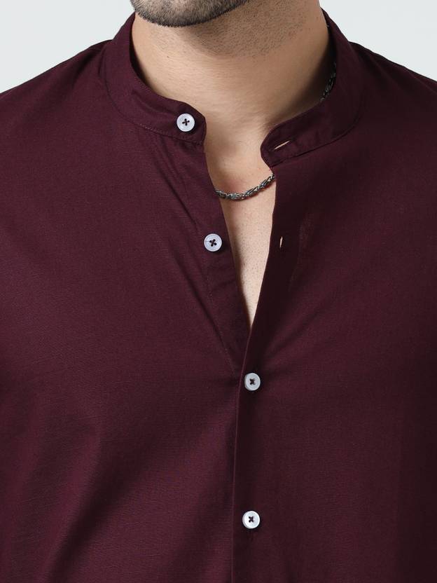 A Chinese collar full-sleeve shirt for men combines traditional elegance with contemporary style. The Chinese collar, also known as a mandarin collar, stands upright and adds a sophisticated touch to the shirt, eschewing the traditional collar flaps for a clean, minimalist look. Made from high-quality fabric, such as crisp cotton or a luxurious blend, this shirt offers both comfort and durability. The full sleeves provide a classic silhouette, making it versatile enough to be dressed up for formal occasions or dressed down for casual wear. The absence of a standard collar and the refined tailoring make this shirt a distinctive choice, blending cultural heritage with modern fashion sensibilities. Whether dressed up with chinos or worn casually with jeans, this shirt is a staple that effortlessly blends classic design with contemporary functionality.