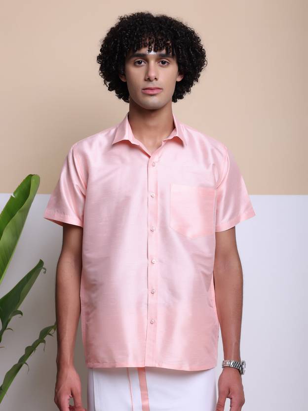HouseOfCommon Men Solid Casual Pink Shirt