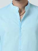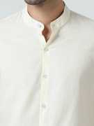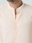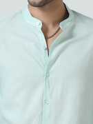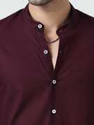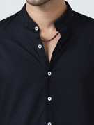 A Chinese collar full-sleeve shirt for men combines traditional elegance with contemporary style. The Chinese collar, also known as a mandarin collar, stands upright and adds a sophisticated touch to the shirt, eschewing the traditional collar flaps for a clean, minimalist look. Made from high-quality fabric, such as crisp cotton or a luxurious blend, this shirt offers both comfort and durability. The full sleeves provide a classic silhouette, making it versatile enough to be dressed up for formal occasions or dressed down for casual wear. The absence of a standard collar and the refined tailoring make this shirt a distinctive choice, blending cultural heritage with modern fashion sensibilities.