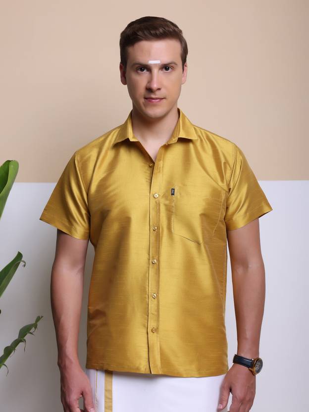 HouseOfCommon Men Solid Casual Yellow Shirt