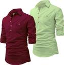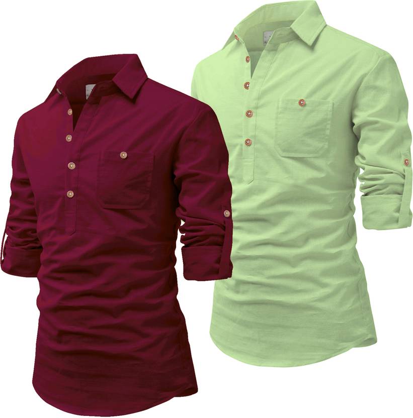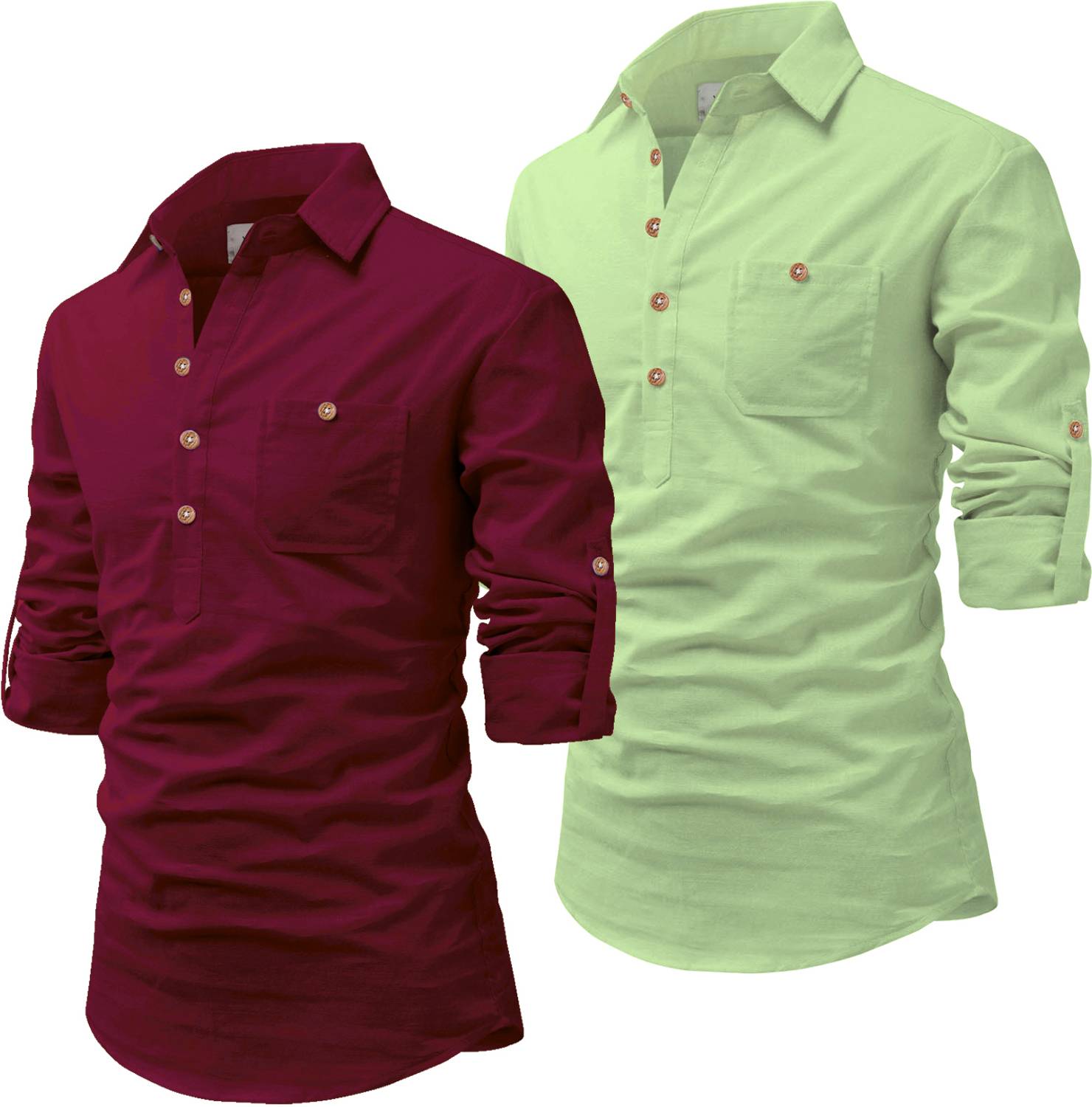 Univibe Men Solid Pathani Kurta (Light Green, Maroon)