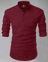 HouseOfCommon Men Solid Cotton Blend Straight Kurta (Maroon)