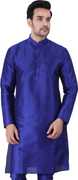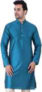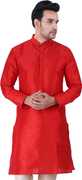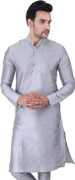 HUZUR Men Solid Dupion Silk Straight Kurta  (Yellow)