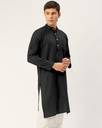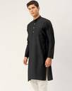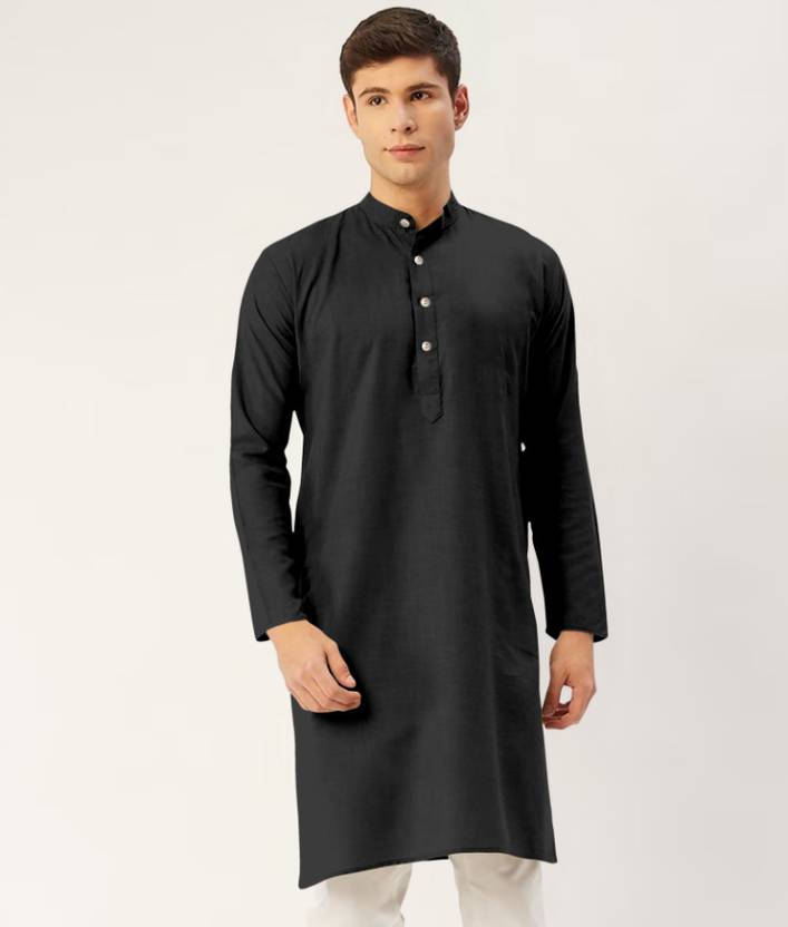 Men Solid Cotton Blend Straight Kurta (Black)