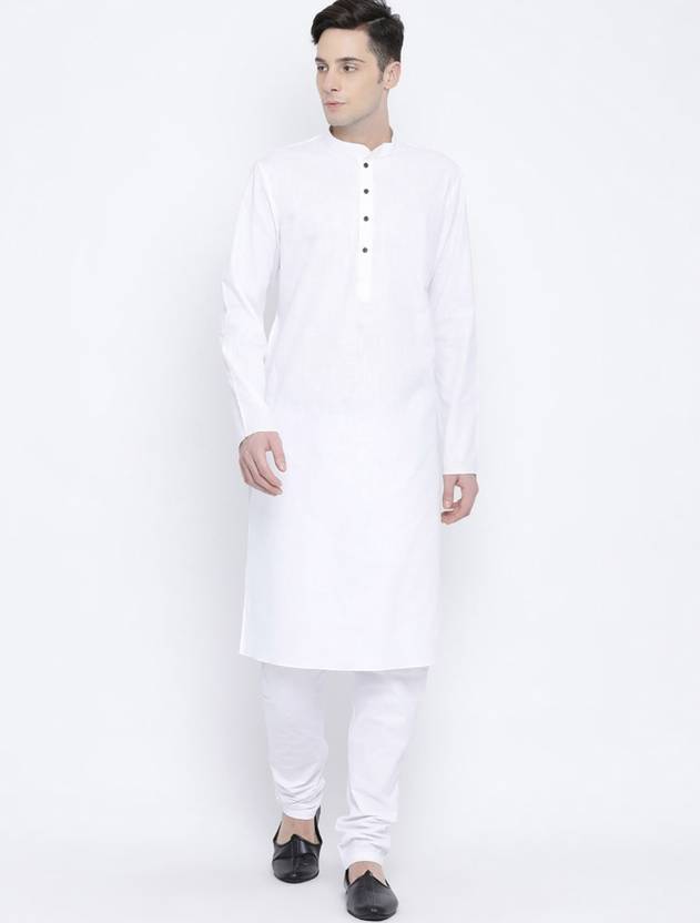 Men Solid Cotton Blend Straight Kurta (White)