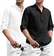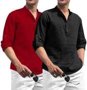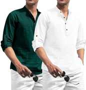 Men Solid Pure Cotton Straight Kurta (Beige)
