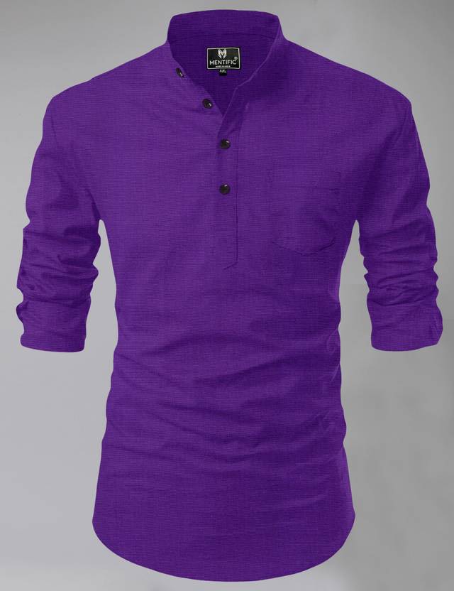 HouseOfCommon Men Solid Cotton Blend Straight Kurta (Purple)