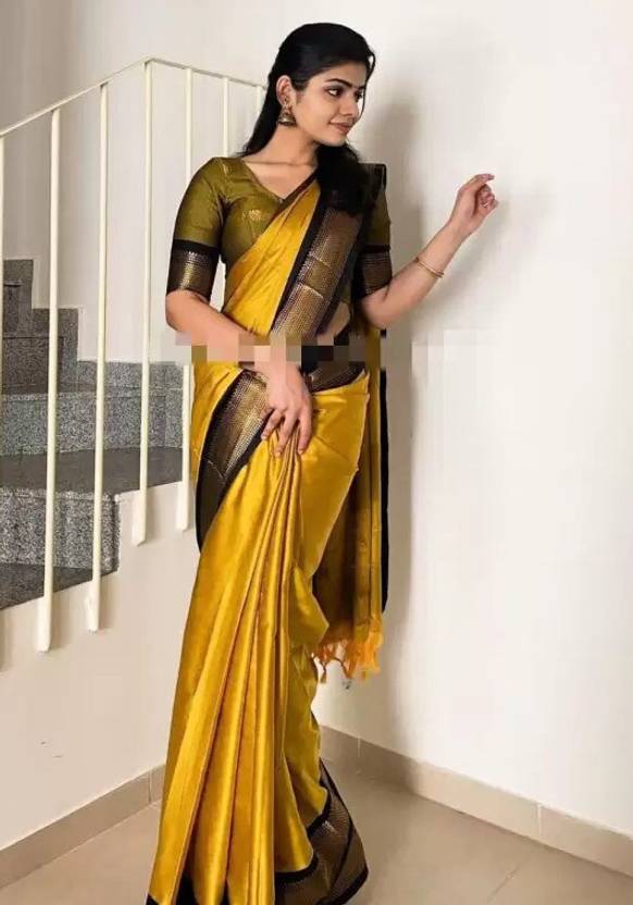 Printed Bollywood Cotton Silk Saree (Yellow)