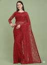 We bring Designer Jacquard Net Saree For Our Lovely Customers This Saree Made By High Export Quality Of Materials Saree Cloth Made By Soft Quality Cotton Materials Bringing Designer Machine Work Like Different Type Of Flowers On Saree With White Color Of Stone Work Saree 5.5 Meter With Complete Less Border Blouse 0.8 Meter Customers Can Stitched As Own Test With Pattern Give you perfect festival look in all the season and party