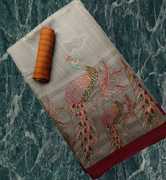 Lightweight and Comfortable Khaadi Cotton Art Silk Mix Saree with Indiaan Peacock Design