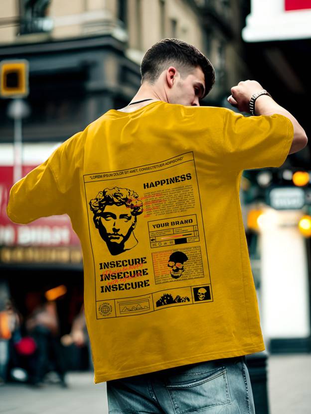 The attention-grabbing newspaper print on the back of the t-shirt adds a unique and stylish element to your overall look. It showcases a collage of newspaper articles, headlines, and images, creating a visually appealing and intriguing design. The yellow color of the t-shirt complements the black and white newspaper print, creating a striking contrast that is sure to turn heads. With its comfortable fit and eye-catching design, this oversize backprint t-shirt is a must-have for anyone looking to make a fashion statement.