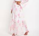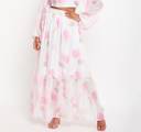 White Floral Printed Georgette Flared Skirt with Gathered Detail And Flared Hem with Attached Lining, Elasticated Waist for comfortable fit