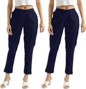HouseOfCommon Regular Fit Women Dark Blue, Beige Trousers