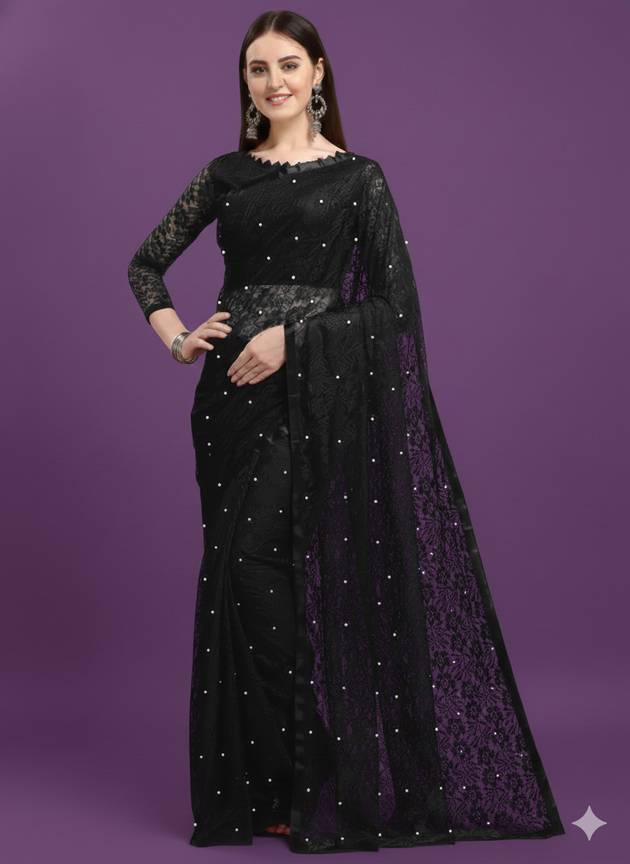 HouseOfCommon Self Design Bollywood Net Saree (Black)